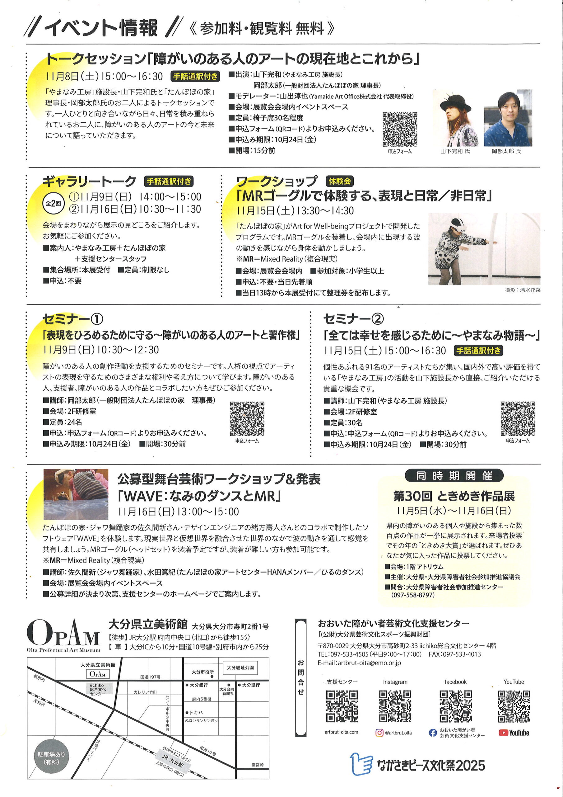 その他:○トークセッション「障がいのある人のアートの現在地とこれから」 11月8日(土)15:00~16:30/出演:山下完和(やまなみ工房)、岡部太郎(たんぽぽの家 理事長) ○ギャラリートーク ①11月9日(日)14:00~15:00 ②11月16日(日)10:30~11:30 ○セミナー 「全ては幸せを感じるために~やまなみ物語~」 11月15日(土)15:00~16:30